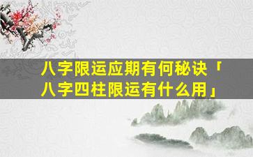 八字四 🍁 柱 🐠 限运的 🐺 用途
