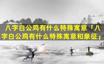 总体而言,八,字白公鸡的寓意没有统一的说法因地区 🐋 文化和个人信仰而异因。此,是,否。具有特殊寓意需 🐦 要根据具体的文化背景和个人理解来判断