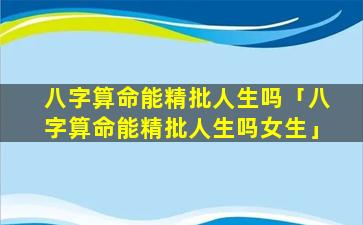 对八字 🐳 算命能精批人 🦢 生的 🌴 评价因人而异: