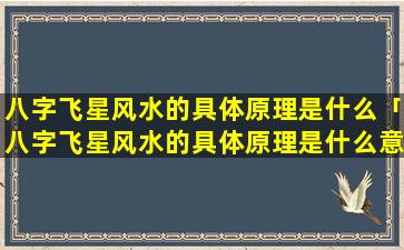 八字飞星风水的 🌲 具 🐠 体原理