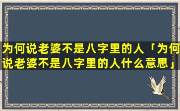 这句话通常是用来表示妻子不是命中注定或 🦟 与丈夫八字不 🌲 合的人。