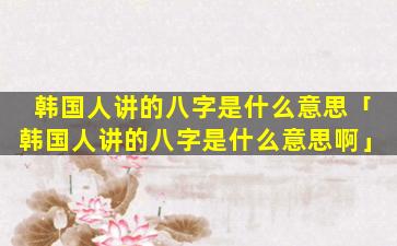 在 🦍 韩国,提到的 🌺 “八字”一“般是指四柱八字”。