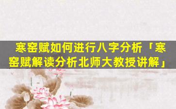 北师 🦁 大教授讲 🌷 解《寒窑赋 🍀 》