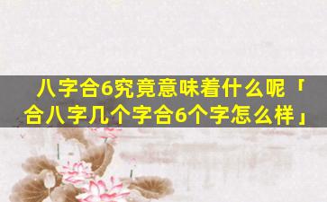 八字合6在命理学中 🦟 代表: