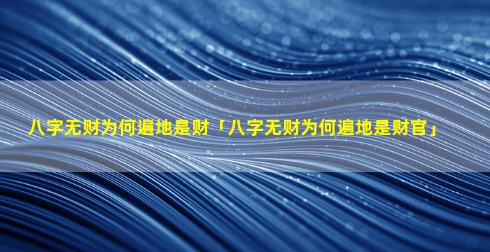 “八字无财”是指根据八字命理 🐒 学,一“个人的出生八字中没有代表财富的财星”。“遍”地是财,则表。示财富遍布各地随处可得