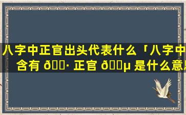 八 🦟 字中正官清 🌴 贵的特征如下 🕊 :
