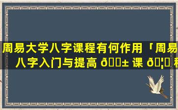 总体而言,周 💮 ,易,大,学,八字课程是一门实用性很强的课 🐅 程可以帮助人们深入了解自己把握运势趋吉避凶提升生活质量。
