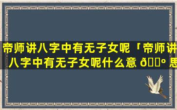是否有子女“帝师讲八字中有无子 ☘ 女”这句话,说明帝师(精通八字学的人)认,为可以通过分析 🌻 一个人的八字判断此人是否有子女。