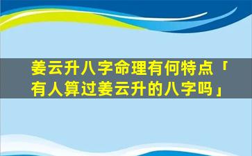 我在互联网和公开数据库 🐳 中搜索了相关信息,无法找到任何关 🦄 于姜云升八字的可靠记录或分析。