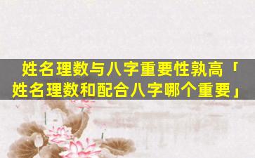 姓名理数和配合八字在一个人命运中的重要性有待综合考虑。对于不同的人,两。者,所,起的。作用可能有所差异但一般来说八字更为基础和重要而姓名学可以起到辅助和 🦁 优化的作用