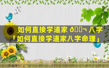 学 🐬 习道家八 🐳 字的直 🦍 接方法