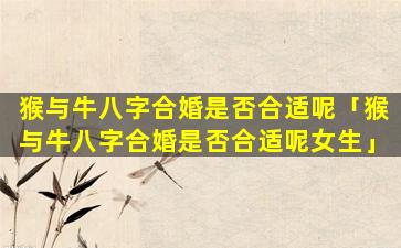 生肖属猴和生肖属牛的八字合婚是否合适,需,要根据具体的八字信息进行分析不能一概而 🌵 论。