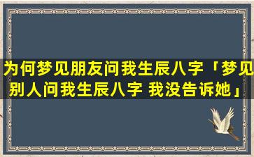 梦见朋友问你生辰八字可 🐡 能有多种含义: