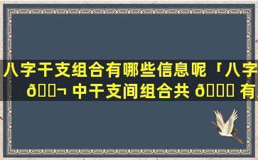 八 🐠 字 🐕 干 🐋 支作用关系详解