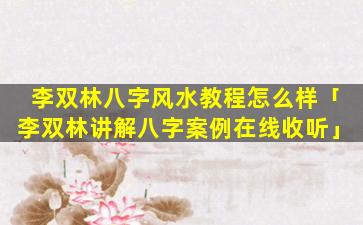 李 🪴 双林 🐺 八字案例在线收 🐬 听