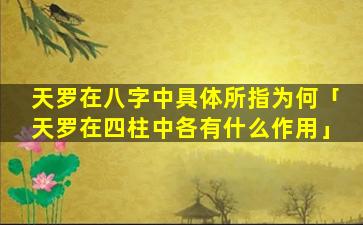 含义:天 🌾 罗是指地支中 🐴 的丑戌未辰四个字,分别对应属牛属、狗属、羊属、龙。