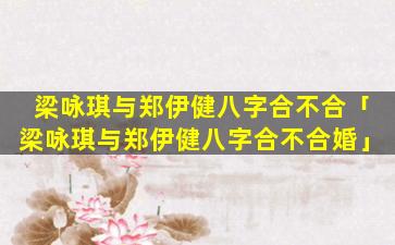 综合分析:梁咏琪 🌿 和郑伊健八字合婚有合有冲,总体来说比较 🌵 平稳。六合,主,缘,分,三合。主助力虽然有相冲 🐡 但也有相合可以互补