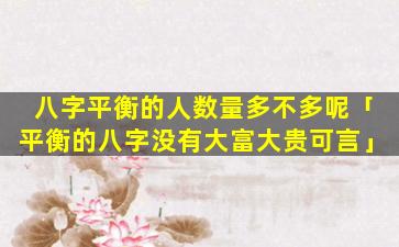 平衡 🦁 的八字并不 🐒 一定意味着没有大富大贵富贵。是八字中各种因 🐎 素综合作用的结果,而平衡。只是其中一个因素