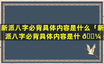 新派八字必背 🐝 具 🐶 体 🌵 内容