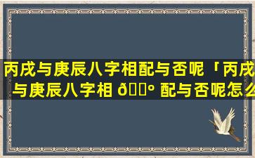 丙戌年与庚 🌻 辰年八字相配分析