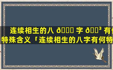 特殊含义:命理格局稳定: 连续相生的八字 🐅 可以形成稳定 🐘 的命理格局,化,解,五行相克的矛盾使命主性格稳定情绪平和。