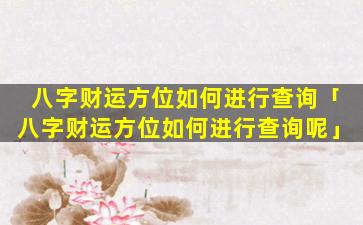 八字财运 🐯 方 🌳 位 🌵 查询方法