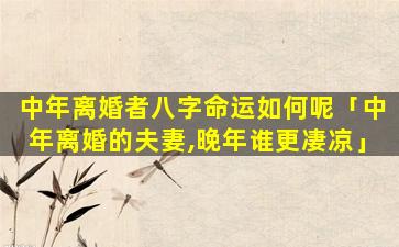 中年离婚的夫 🦈 妻,晚年,谁,更凄凉取决于 🐋 多种因素无法一概而论。