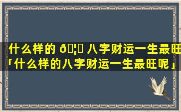 了解不同八 🕷 字命 🦅 格与财运 🐈 的关系。