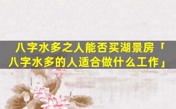 “八字水多之人能否买湖景房”的说法缺 🐝 乏科 🐳 学依据。