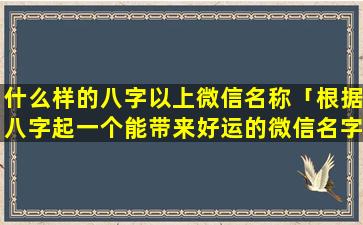 利于 🌳 财运 🌷 的八 🕊 字微信名称