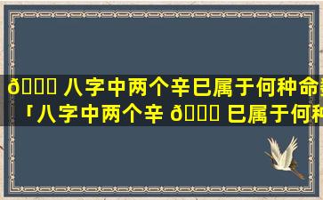 八字中两个 🐧 辛巳属于身强伤官旺 💐 的命 💮 格。