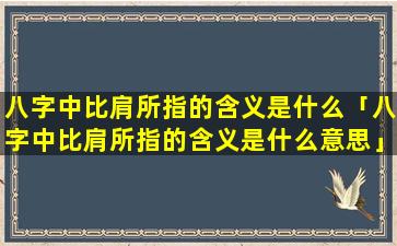 在八字 🐈 命理中,“比肩”又“称”为“劫财或帮身”,代表 🦁 与日主同五行同、阴阳的干支比肩 🦍 。所代表的意义如下: