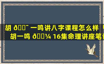 清晰易懂的讲 🕷 解:胡一鸣的课程语言简洁明了,善于用通俗易懂的 🌾 方式解释八字知识。