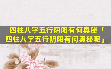 四 🐵 柱八字 🐟 五行阴阳的奥秘