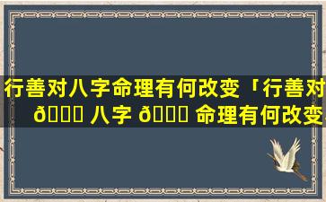 根据传统八字命理的说法,行善 🌾 确实可以对一个人的八字命理产生一些改变。