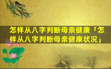 从八字 🐡 分析母亲健康情况 🐦