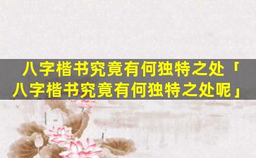 八字楷书的 🐶 独特之 🐴 处 🦟