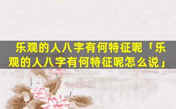乐观 🦍 者的八字 🌺 特 🦢 征