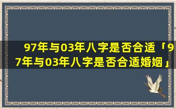 综合来看:1997 年和年 2003 出生 🦁 的八字生,肖,相,合,天干相合但地支相冲纳音五行相克。整,体,而,言。婚姻运势不佳容易出现矛盾 🦊 和争吵不 🐕 利婚配