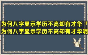 即便八字显示学历不高,也不代 🌲 表 🦊 一个人不能拥有才华。后。天的努力和 🌻 机缘同样重要