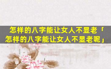 不利 🐎 于女 🌷 性显年轻 🐝 的八字特征: