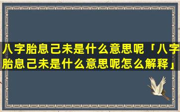 胎息己未是八字命理中的一种特殊 🐡 格局,解释 🌷 如 🌷 下: