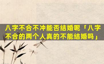八字不合不冲,并不代表一定不能结 🪴 婚。如,果,满足以下条件即使八字不合也 🦆 可能缔结良缘: