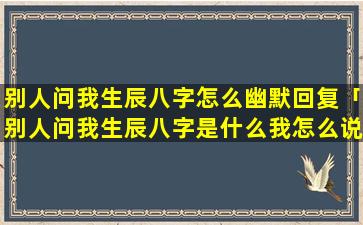 幽默地回应:“我 🍁 的生辰八字是天机不可泄露!”
