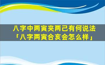 八字两寅 🐝 合 🐒 亥的影响 🐬