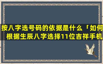 注意:按八 🐧 字选号码只是辅助方法,不应作为唯一参 🦈 考因 🌳 素号码。吉,凶与否还受到其他因素影响如手机号码组合搭配、个。人能量场等