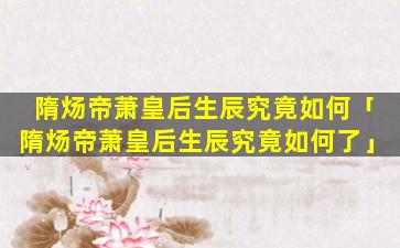 隋书 🐎 和北史中都没有记载萧后的生辰。