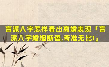 奇准无比的盲 🕷 派八字 🐧 婚姻断语