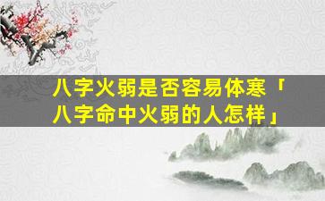 是的,八字火 🦍 弱的人容易体寒。