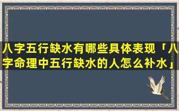 根据八字命理,五行缺水的人通常表现 🐯 为性情急躁、冲、动,缺、乏、耐性和持久力容易出现泌尿系统肾脏膀胱等方面的健康问题为。了,平。衡五行缺水者需要进行补水